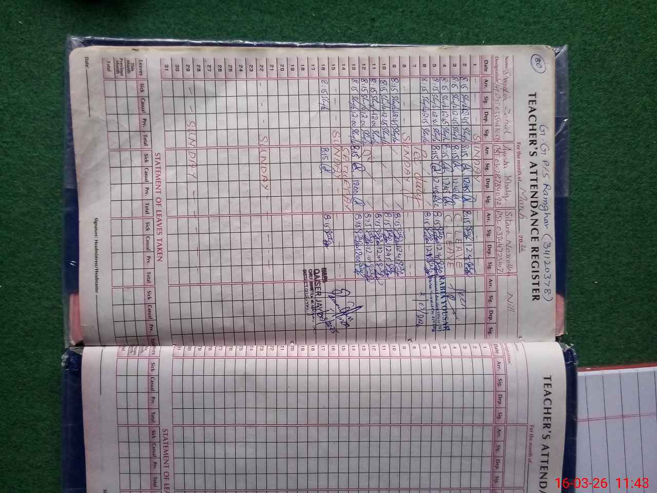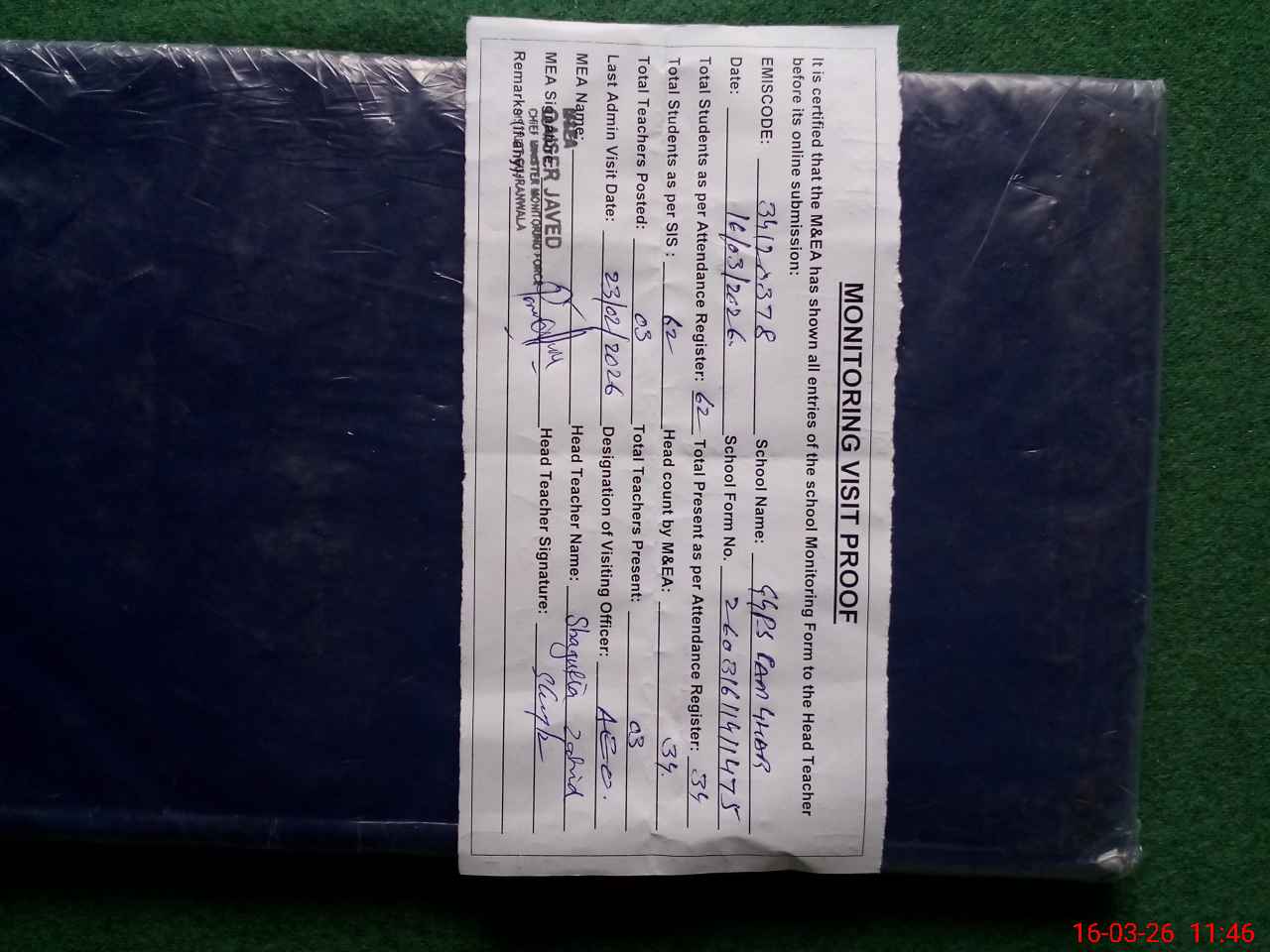 | Attendance Register | Head Teacher | MEA with School | Visit Proof |