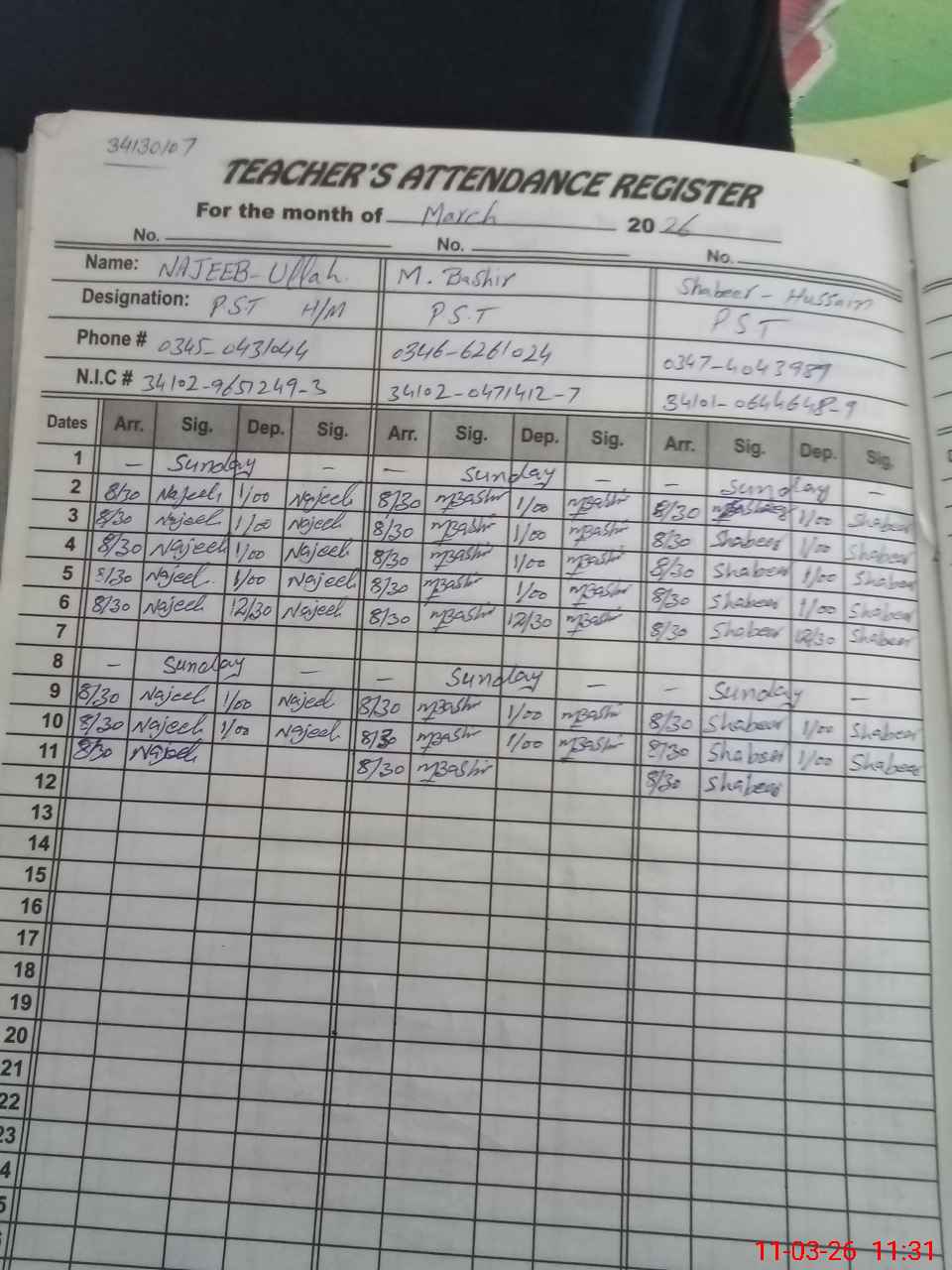 | Name: NA**** UL**** Designation: (School Headmaster's/Headmistress's) PST/PTC/JV Phone/Cell Number: 03**** |