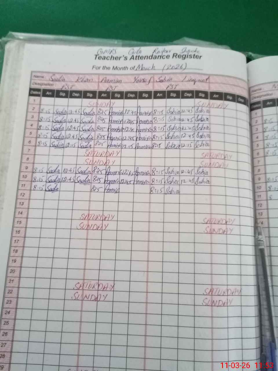| Name: SA**** KH**** Designation: (School Headmaster's/Headmistress's) PST/PTC/JV Phone/Cell Number: 03**** |