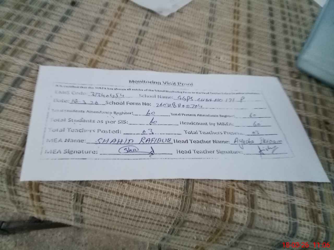 | EMIS Code: 31340454 | Name of School: GGPS CHAK NO. 171/P | |||