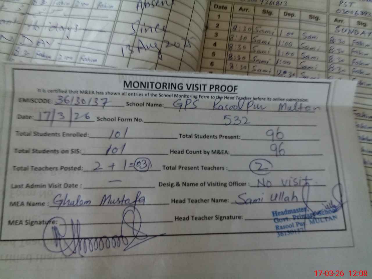 | EMIS Code: 36130137 | Name of School: GPS RASOOL PUR MOZA RASOOL PUR MULTAN | |||