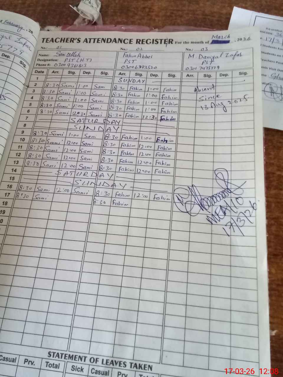 | 36**** | Mu**** Da**** Za**** | PST Arts | Regular | 0 | 0 | 0 | 0 | 0 | 0 | 0 | 0 | 0 | Absent (Un-Authorized) |