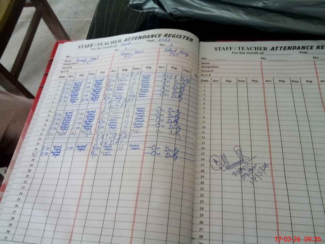 | Name: Na**** Sa**** Designation: (School Headmaster's/Headmistress's) PST Phone/Cell Number: 03**** |