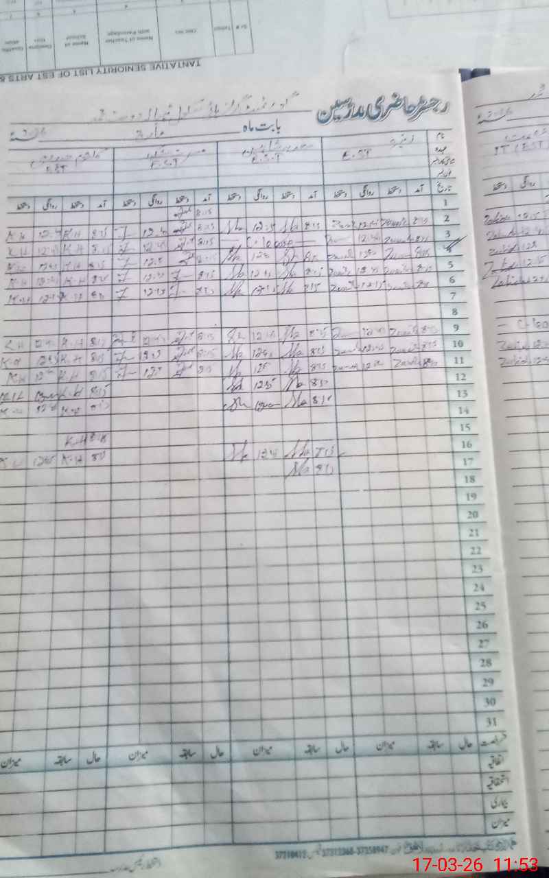 | 35**** | Iq**** Am**** | PST Arts | Regular | 28 | 0 | 0 | 28 | 0 | 0 | 0 | 0 | 0 | Maternity |