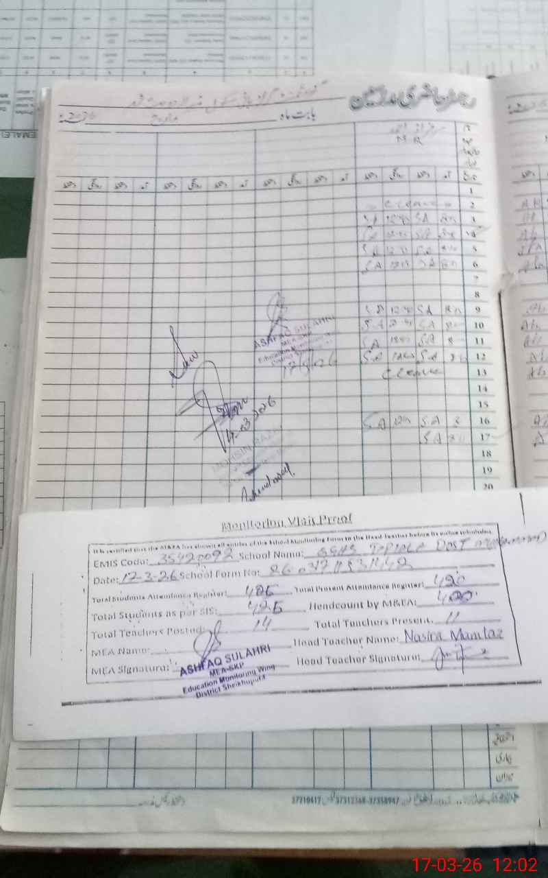 | Attendance Register | Head Teacher | MEA with School | Visit Proof |