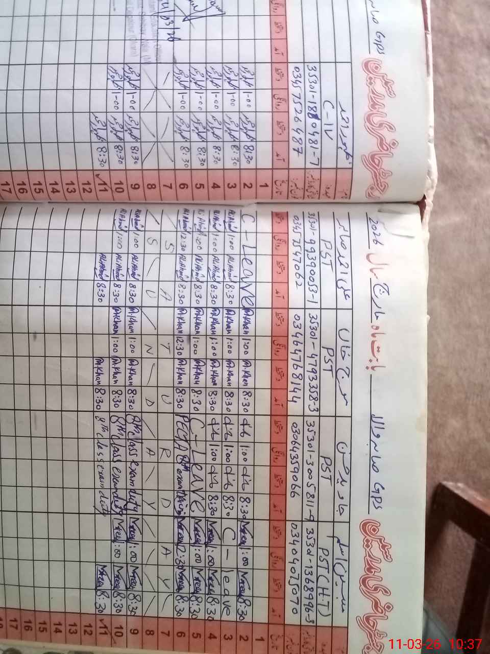 | Leave | Duty | Absent | Maternity | Medical | Ex- Pak |