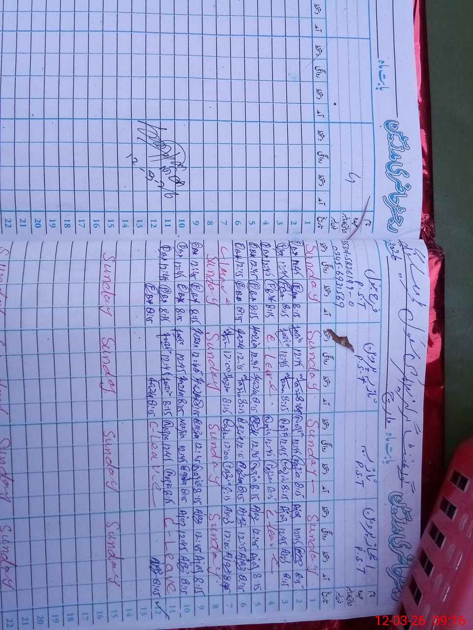 | CNIC | Full Name | Designation | R/C | Absence During Last Calender Month |