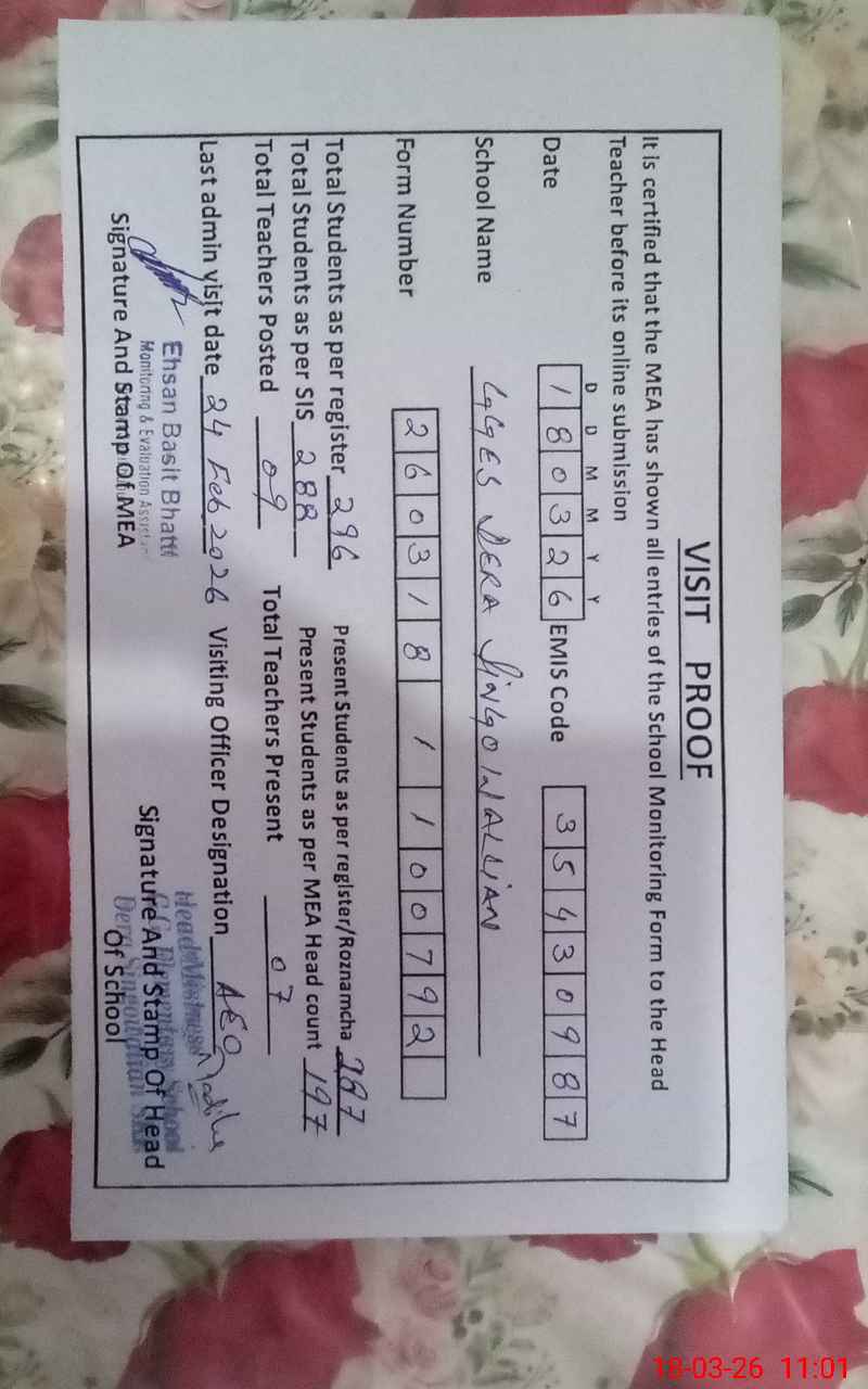 | EMIS Code: 35430987 | Name of School: GGES DERA SINGOWALLIAN | |||