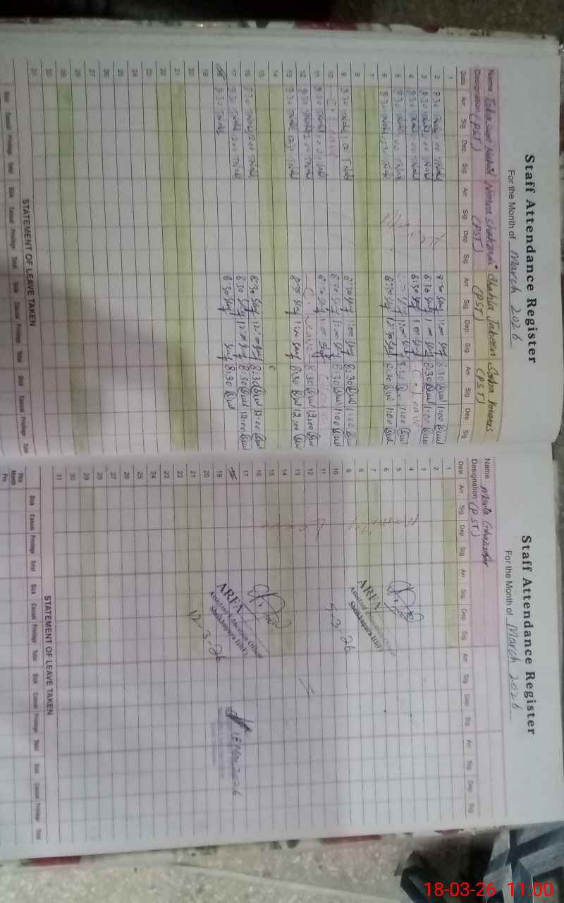 | 35**** | Ni**** Sh**** | PST Science/Maths | Regular | 0 | 0 | 0 | 0 | 0 | 0 | 0 | 0 | 0 | Absent (Un-Authorized) |