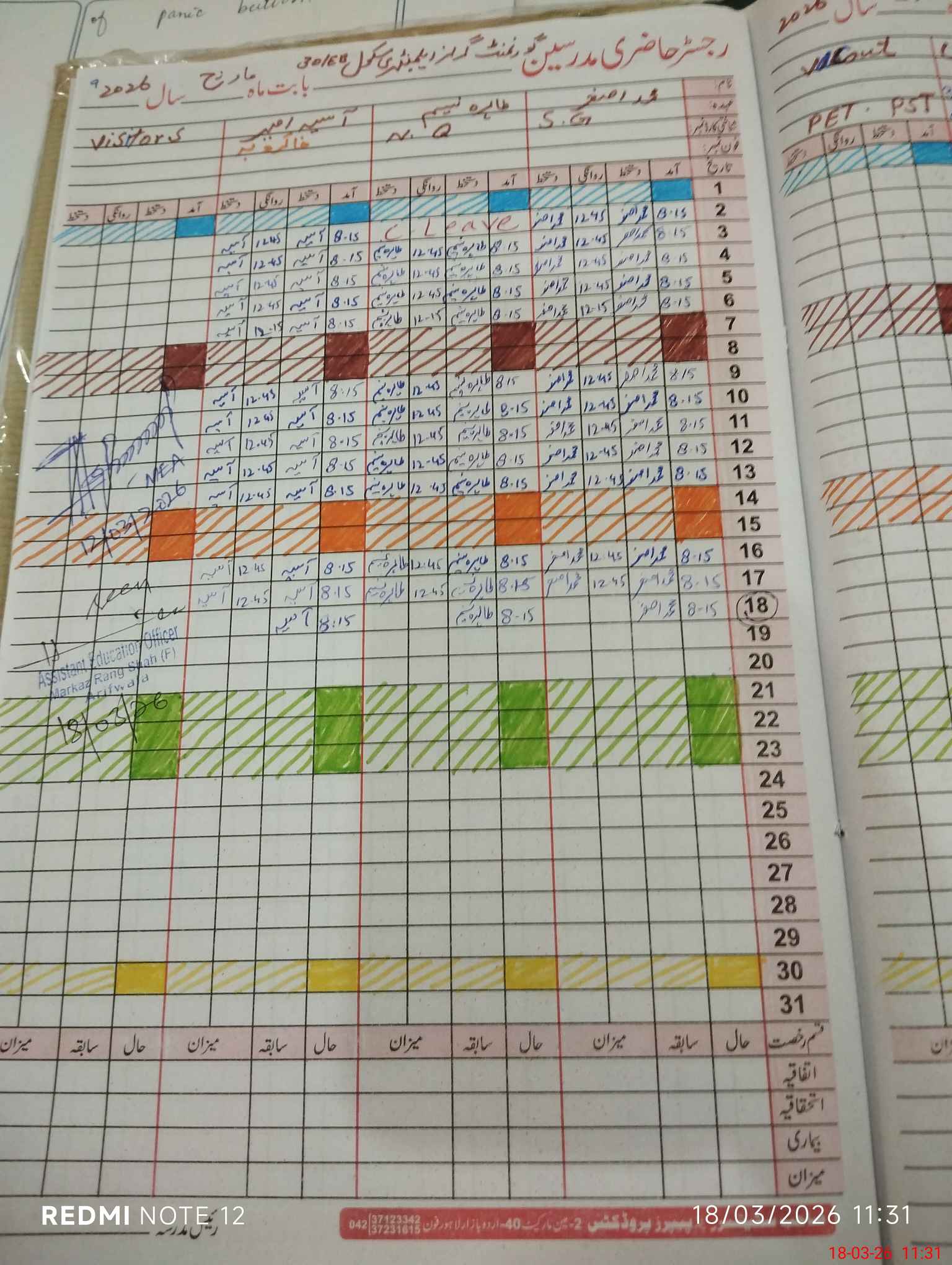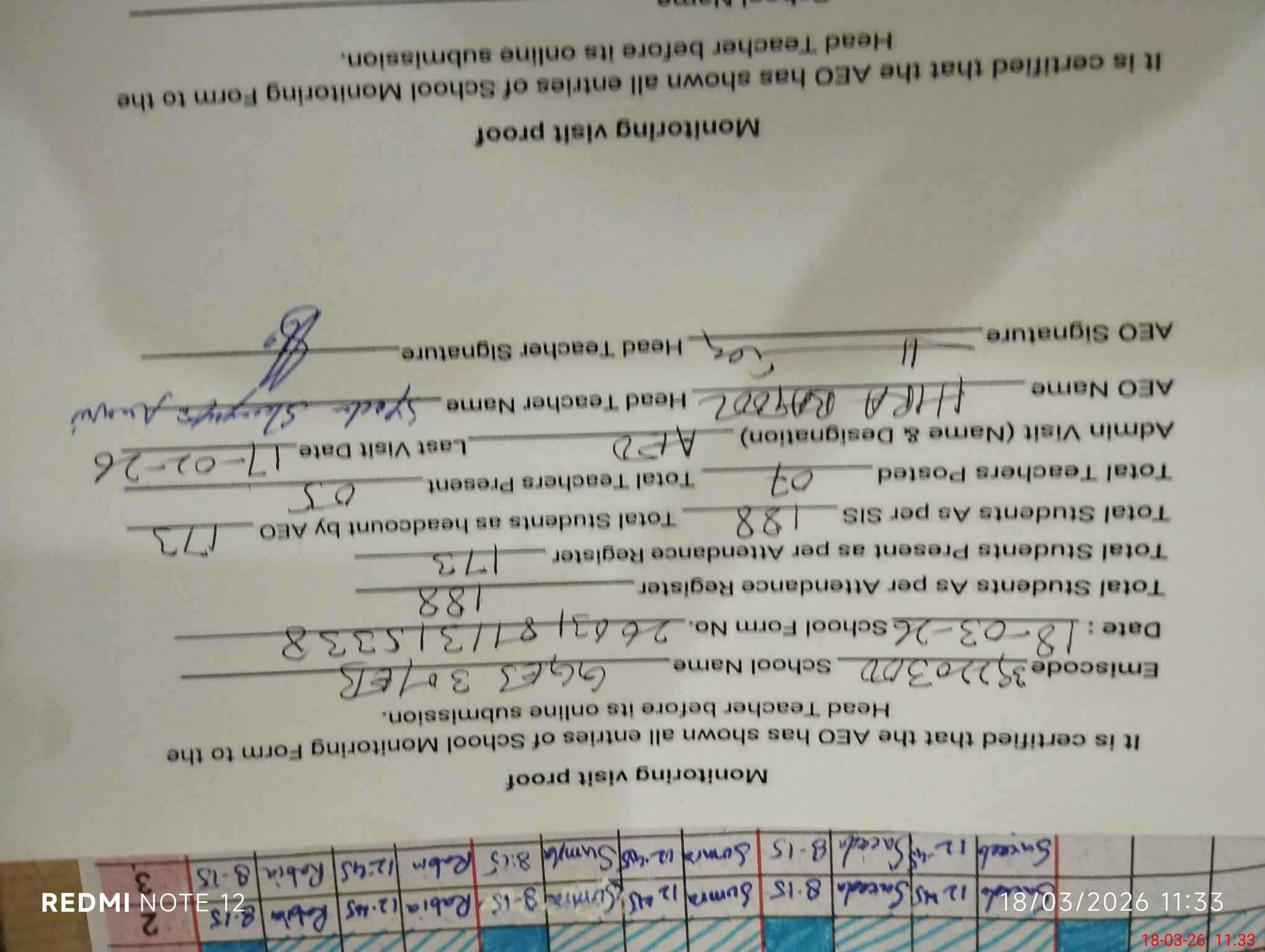 | Attendance Register | Head Teacher | MEA with School | Visit Proof |