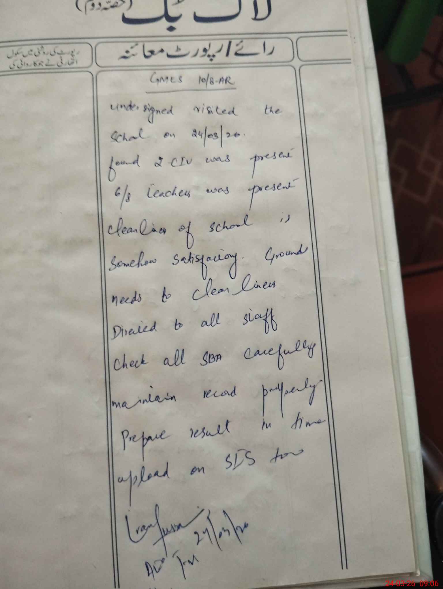 | Certified that this School was Inspected by the Undersigned MEA/DMO Today and the Information Stated Above is as Per Record. | |||||