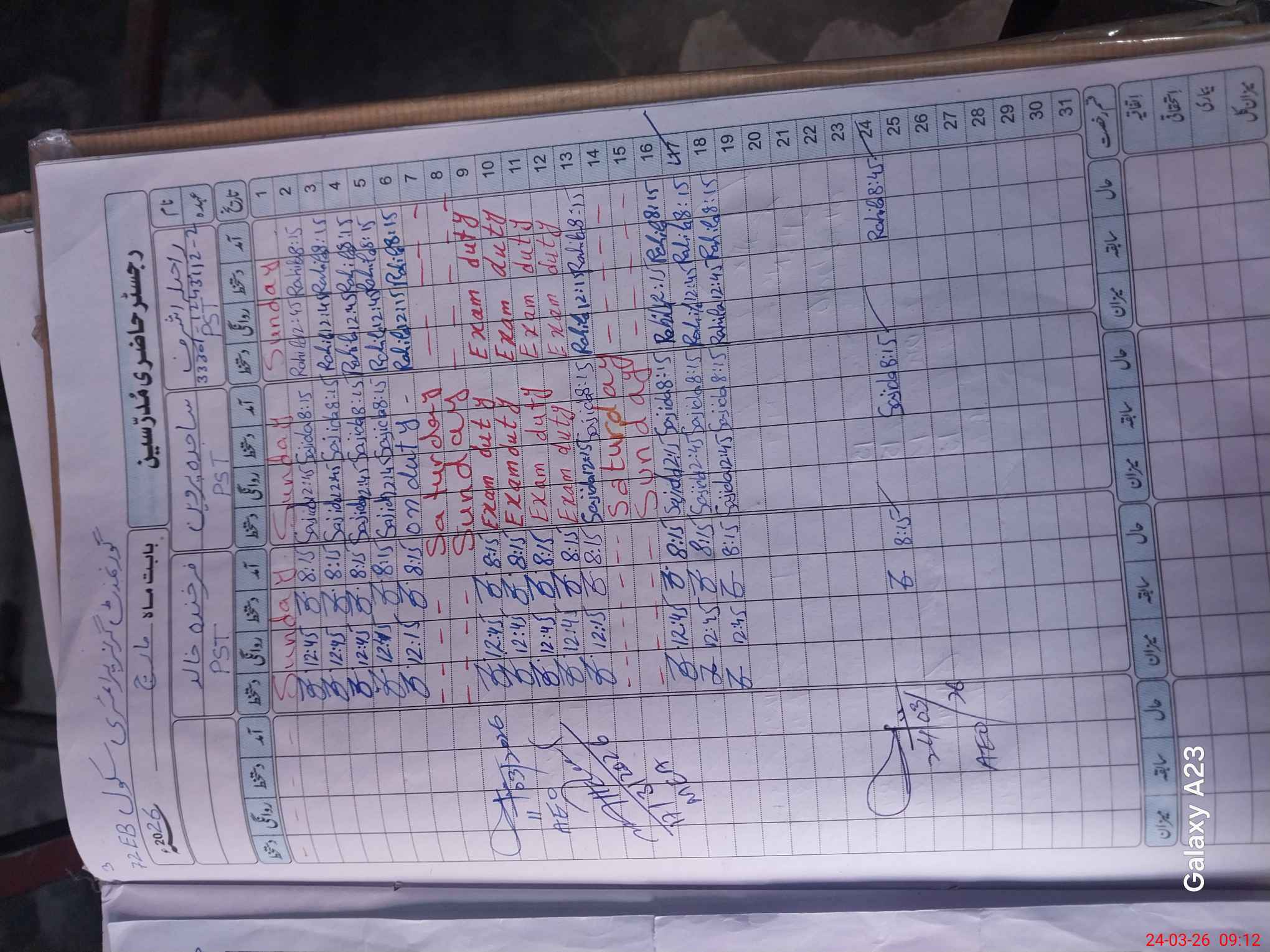 | Name: RA**** AS**** Designation: (School Headmaster's/Headmistress's) PST Phone/Cell Number: 03**** |