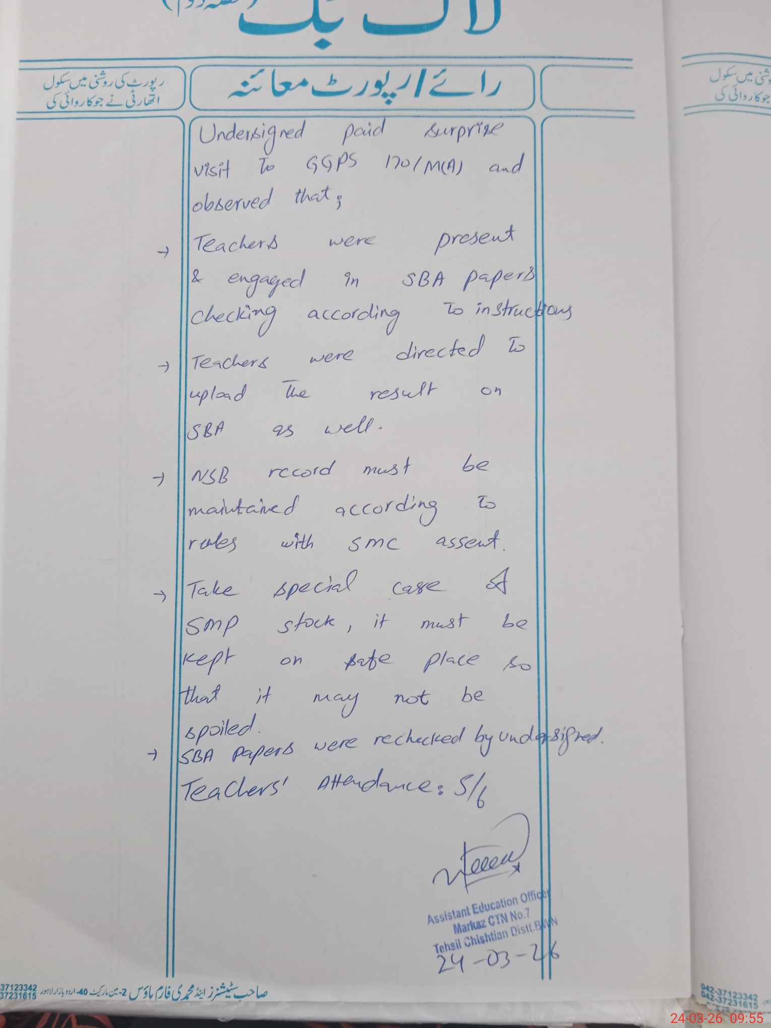 | Certified that this School was Inspected by the Undersigned MEA/DMO Today and the Information Stated Above is as Per Record. | |||||