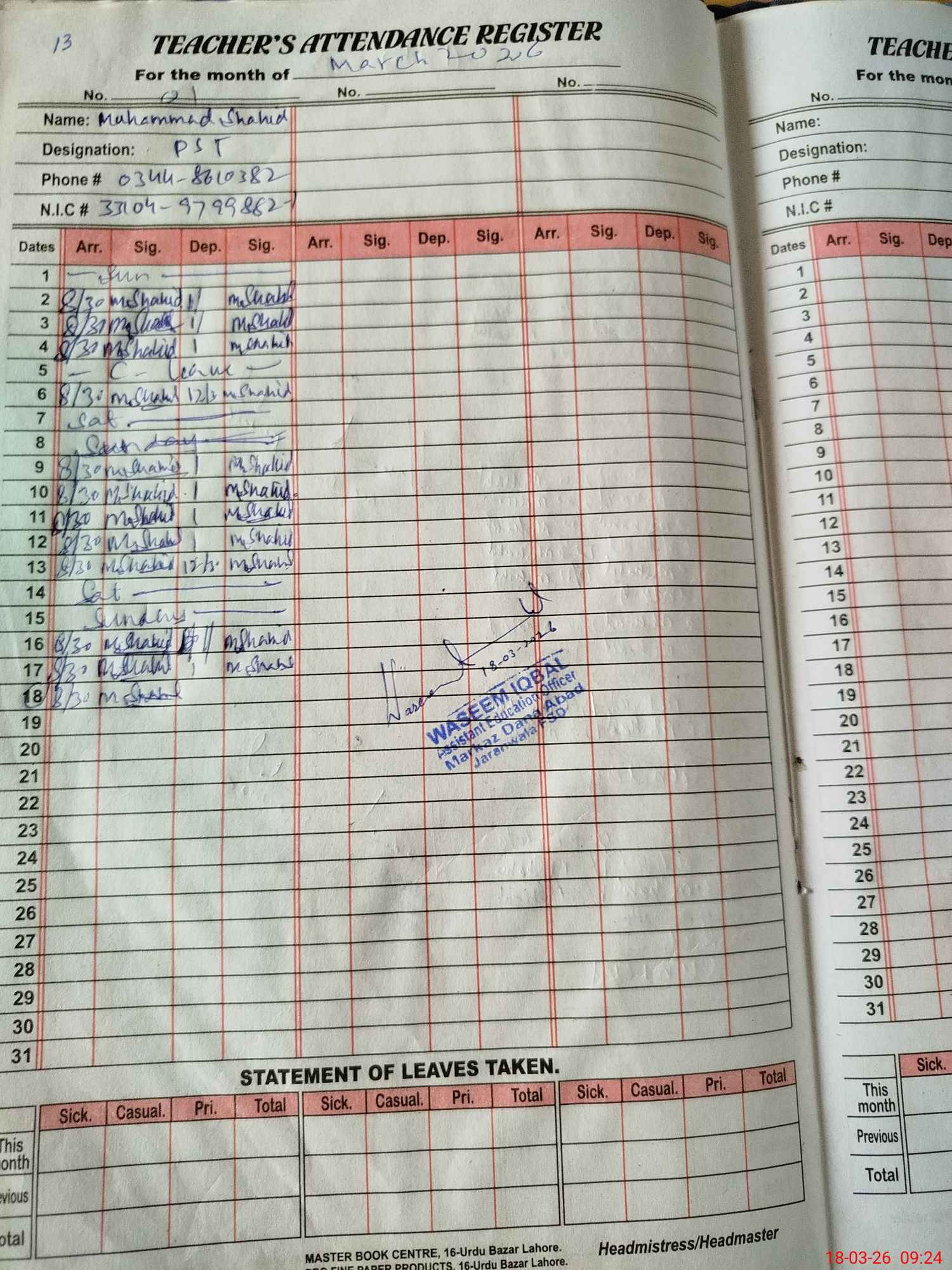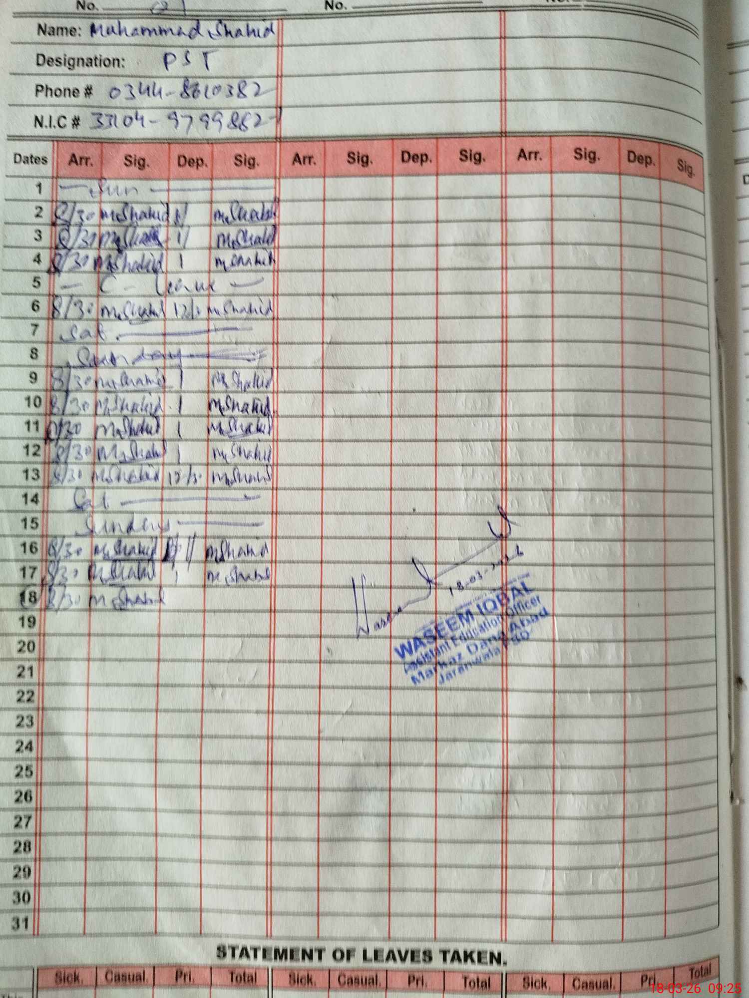 | Name: KA**** AL**** AK**** Designation: (School Headmaster's/Headmistress's) PST Phone/Cell Number: 03**** |