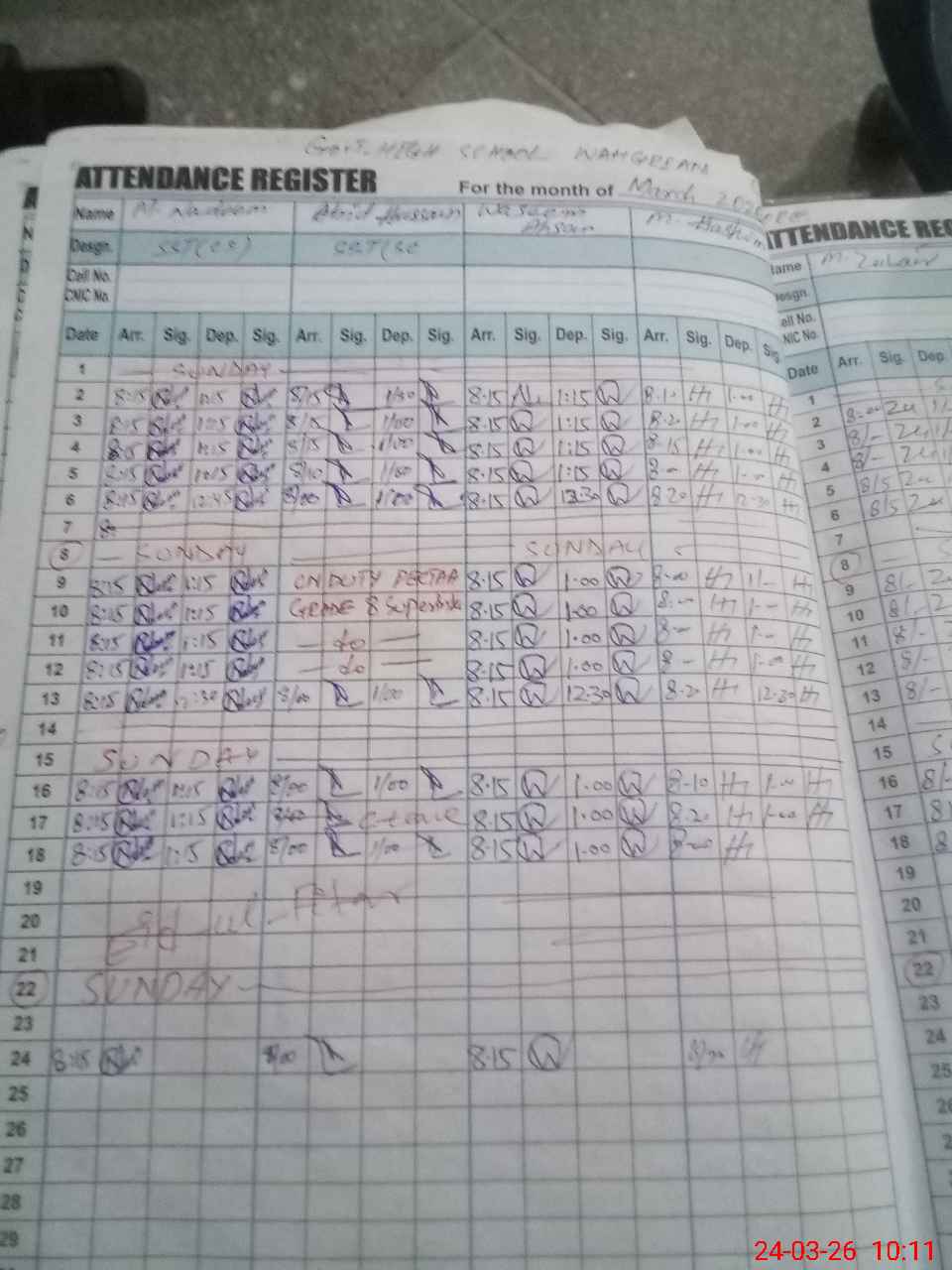 | CNIC | Full Name | Designation | R/C | Absence During Last Calender Month |
