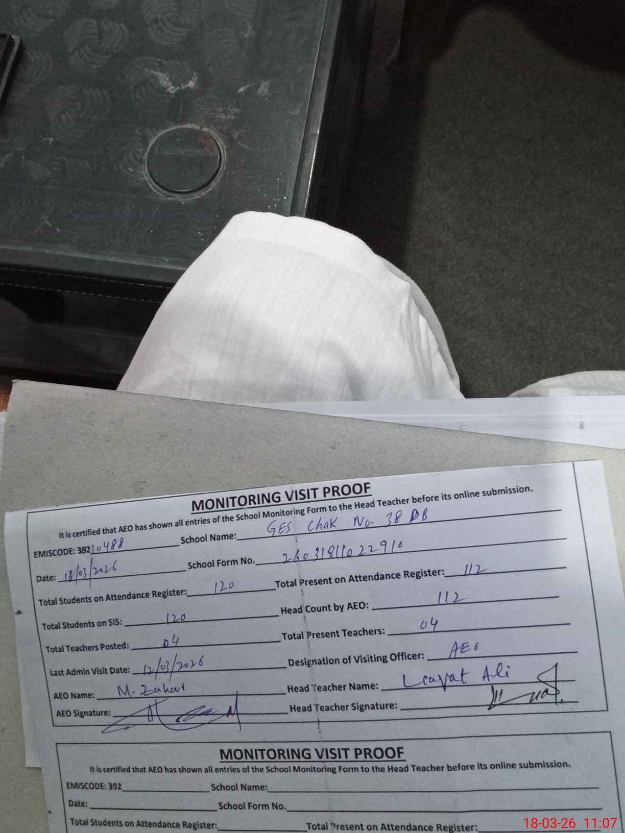| Attendance Register | Head Teacher | MEA with School | Visit Proof |