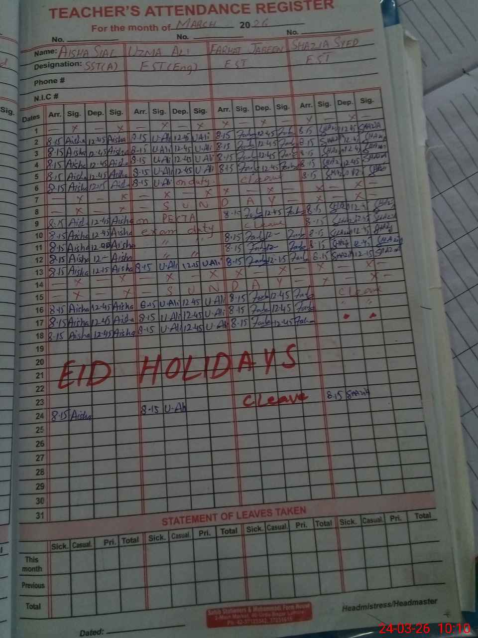 | 33**** | Za**** Ko**** | PST Arts | Regular | 0 | 0 | 0 | 0 | 0 | 0 | 0 | 0 | 0 | Casual |