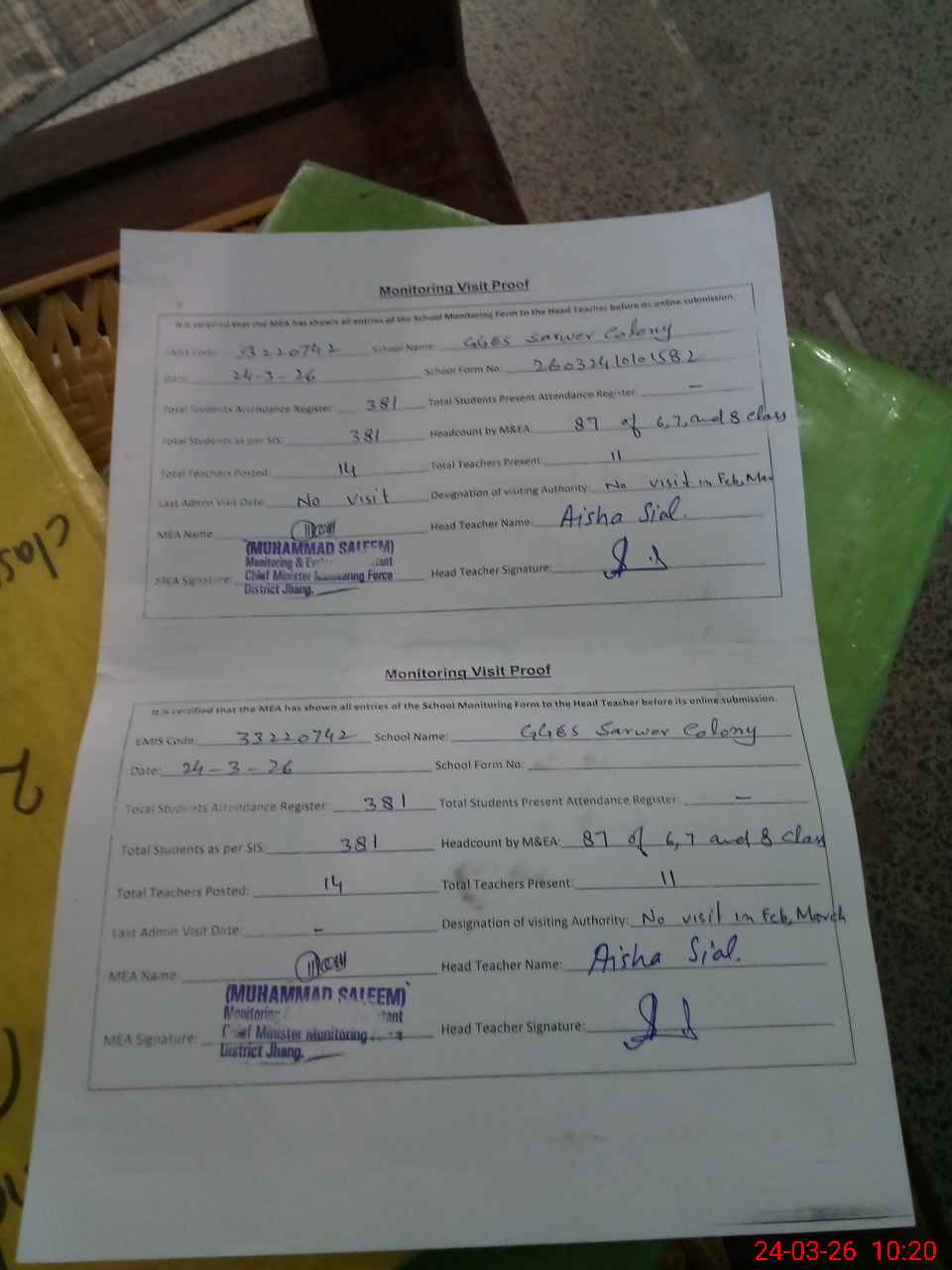| EMIS Code: 33220742 | Name of School: GGES SARWAR COLONY | |||
