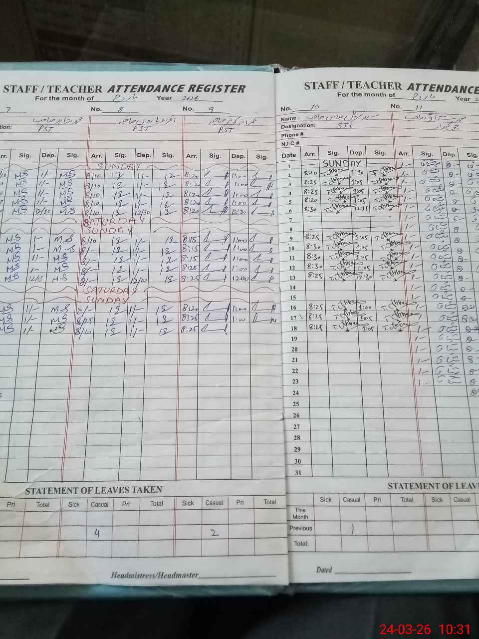 | Leave | Duty | Absent | Maternity | Medical | Ex- Pak |