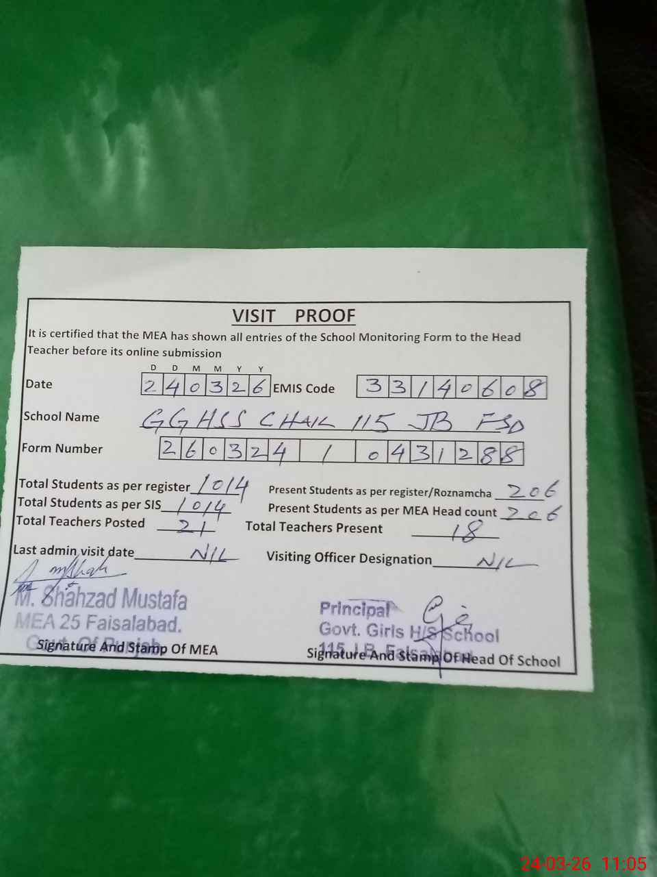 | EMIS Code: 33140608 | Name of School: GGHSS CHAK 115 JB FSD | |||