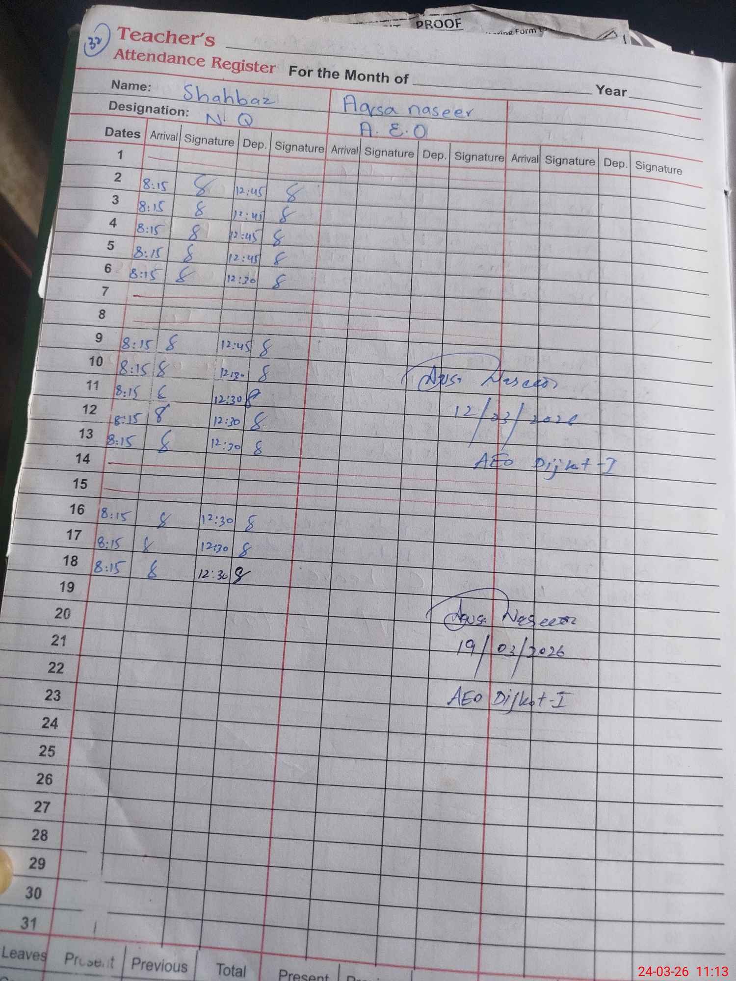 | Name: NA**** -U**** Designation: (School Headmaster's/Headmistress's) PST Phone/Cell Number: 03**** |