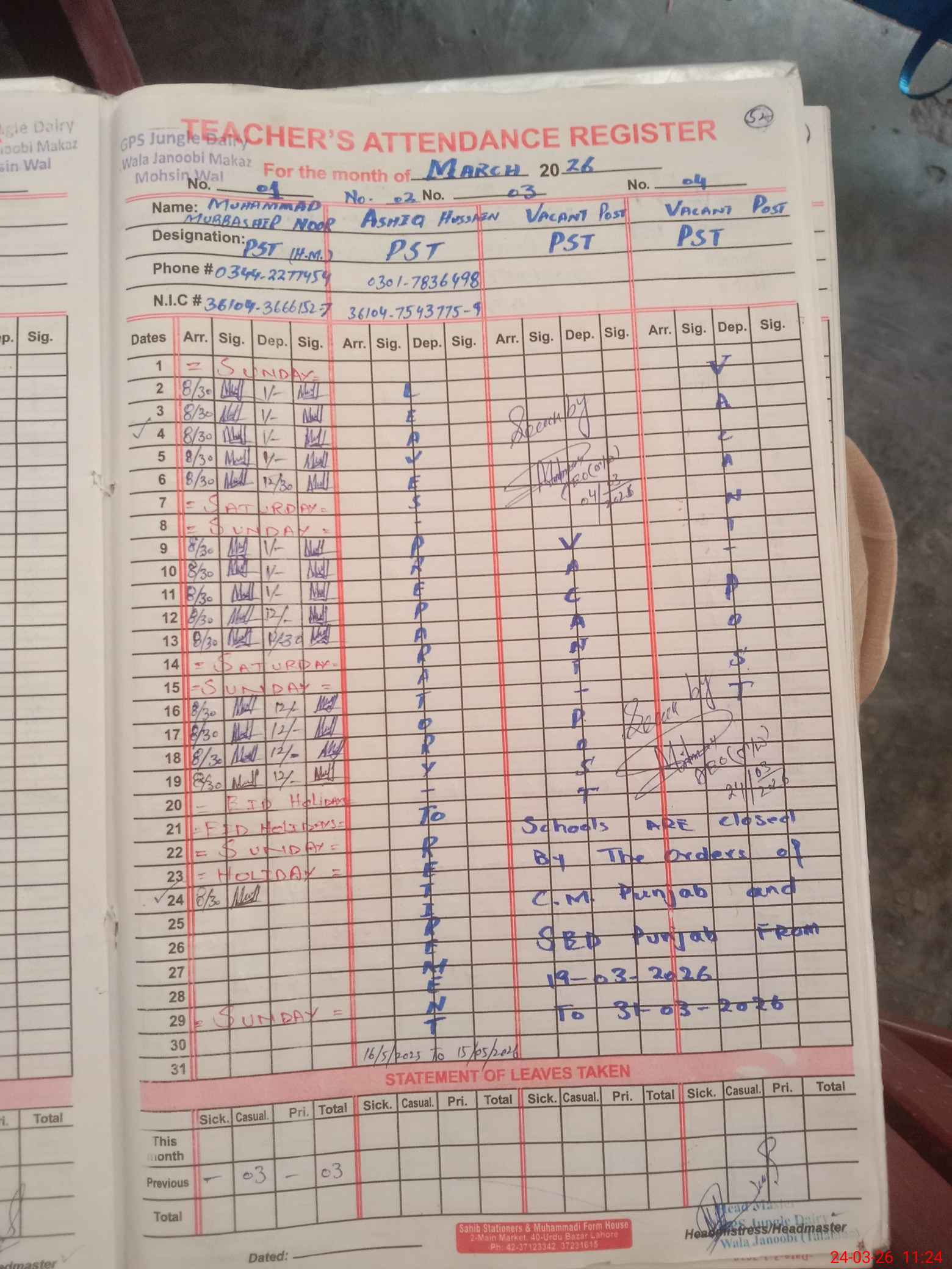 | EMIS Code: 36430225 | Name of School: GPS JUNGLE DARA WALA, TULAMBA | |||