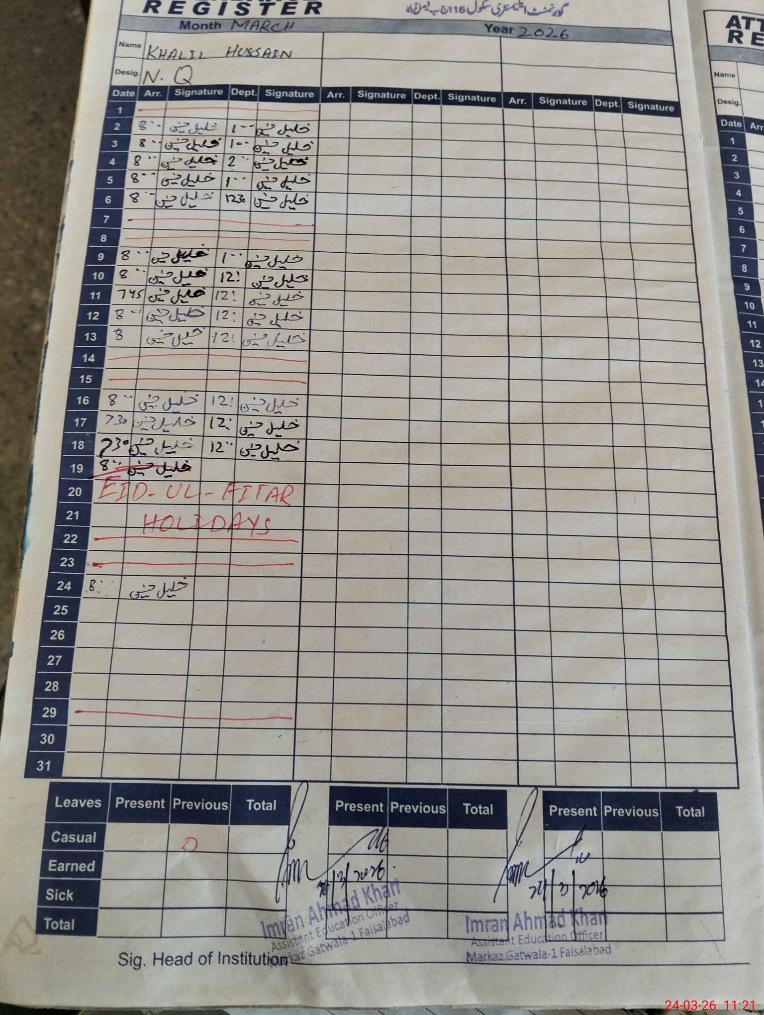 | Leave | Duty | Absent | Maternity | Medical | Ex- Pak |