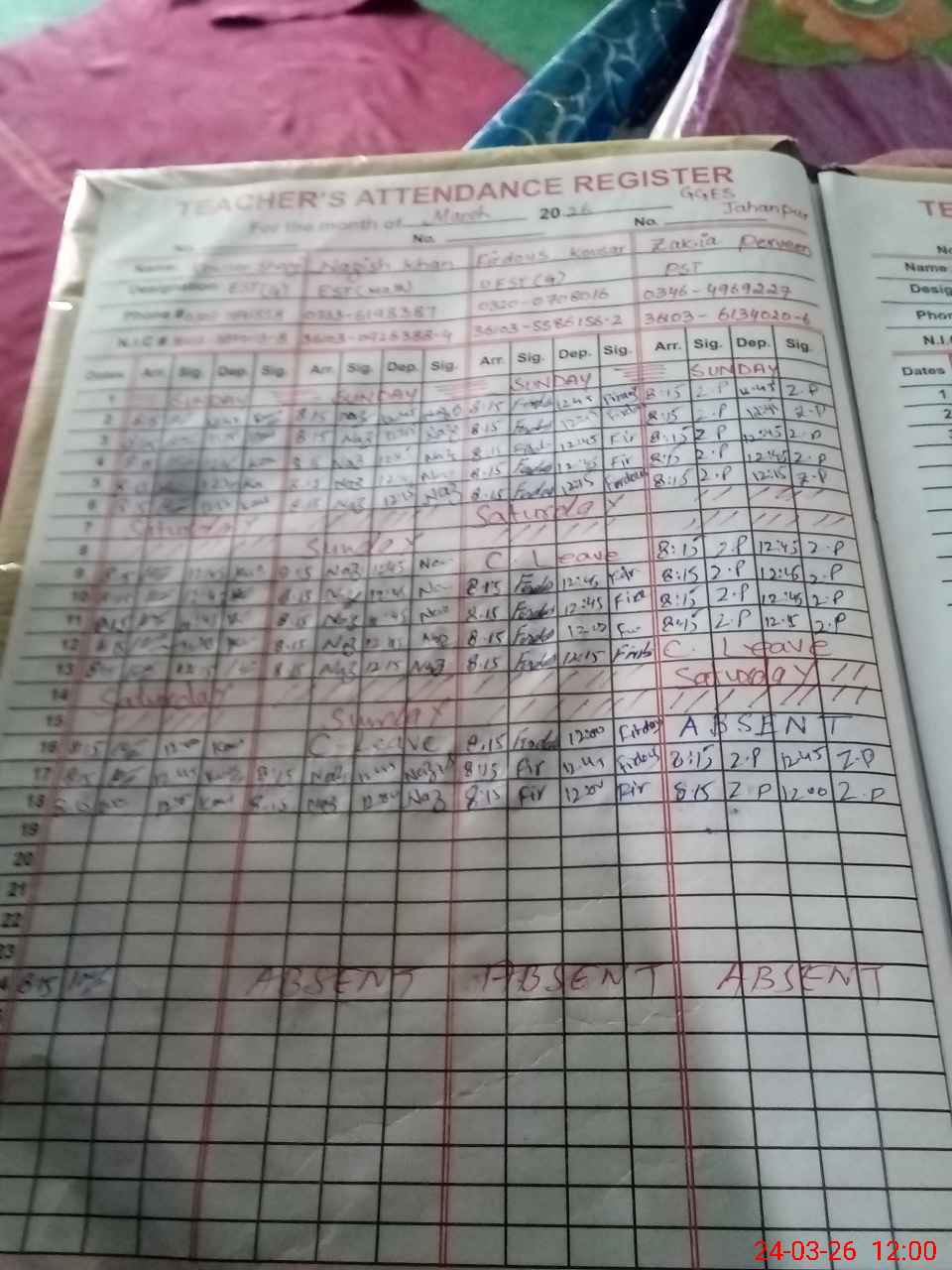 | 36**** | Na**** Kh**** | EST Science | Regular | 0 | 0 | 0 | 0 | 0 | 0 | 0 | 0 | 0 | Absent (Un-Authorized) |