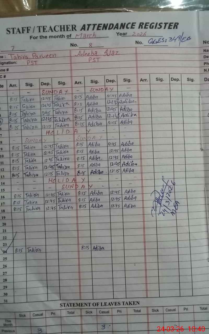 | Name: NA**** AK**** Designation: (School Headmaster's/Headmistress's) SST (GENERAL) Phone/Cell Number: 03**** |