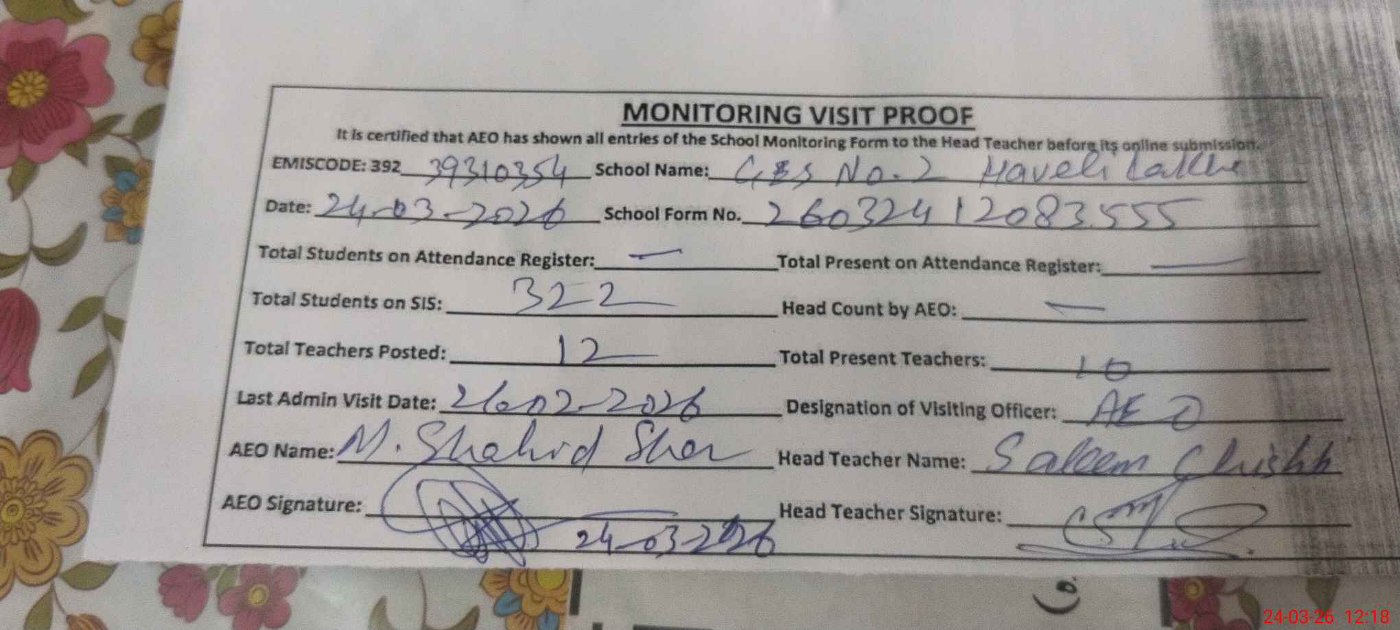 | EMIS Code: 39310354 | Name of School: GES HAVELI NO.2 | |||