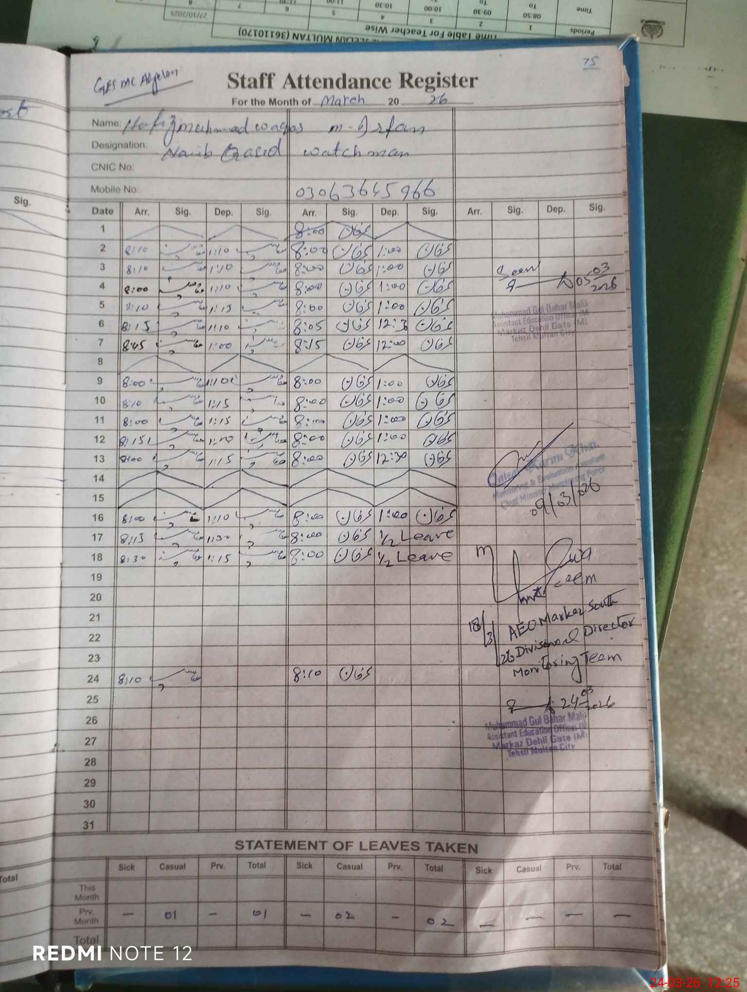 | Name: IS**** AN**** Designation: (School Headmaster's/Headmistress's) sst Phone/Cell Number: 03**** |