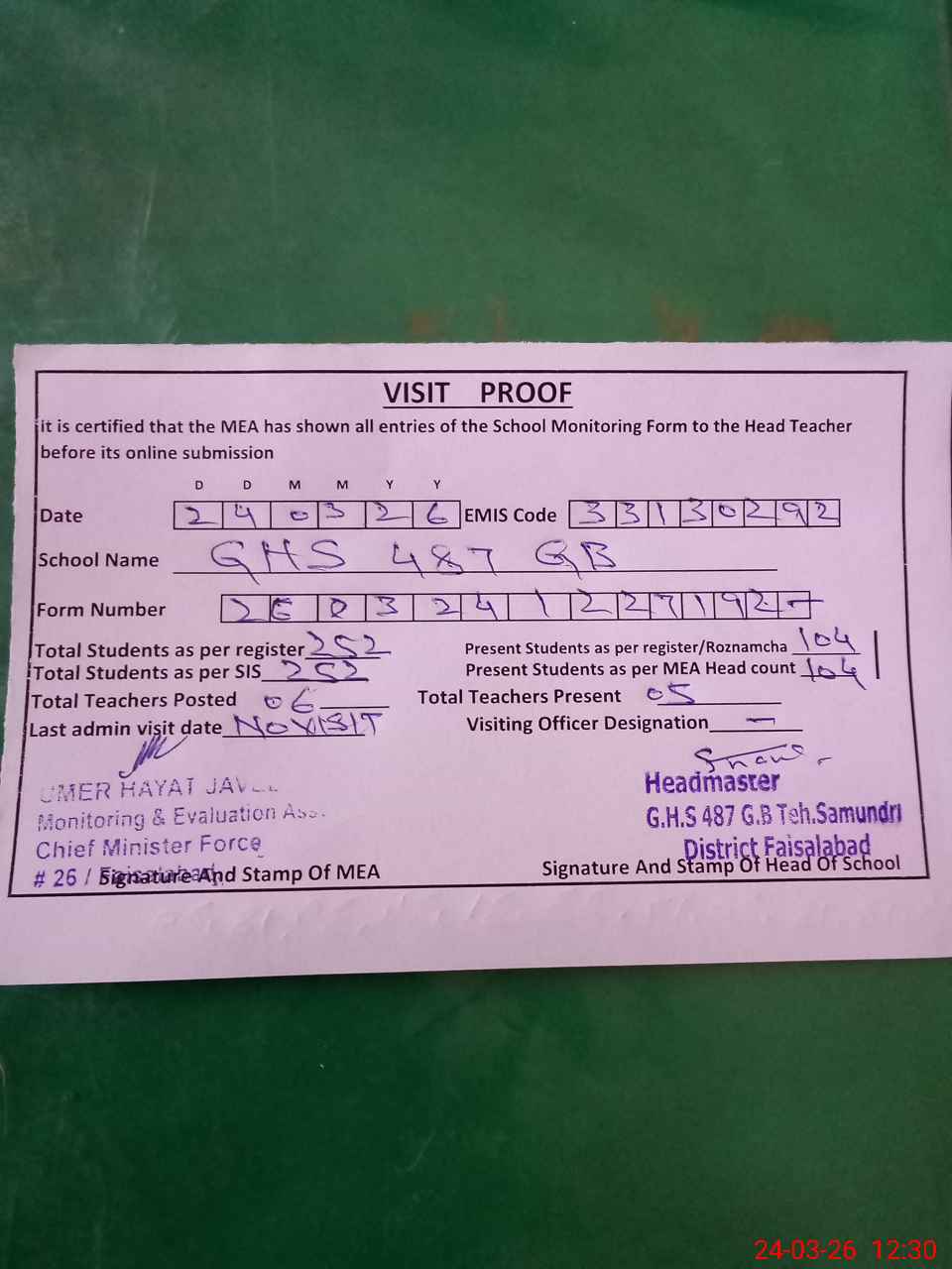 | EMIS Code: 33130292 | Name of School: GHS 487/GB | |||