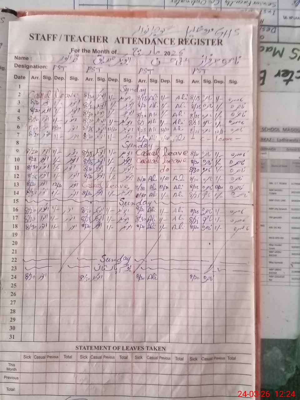 | 34**** | Ma**** Hu**** | PST Science/Maths | Regular | 0 | 0 | 0 | 0 | 0 | 0 | 0 | 0 | 0 | Absent (Un-Authorized) |