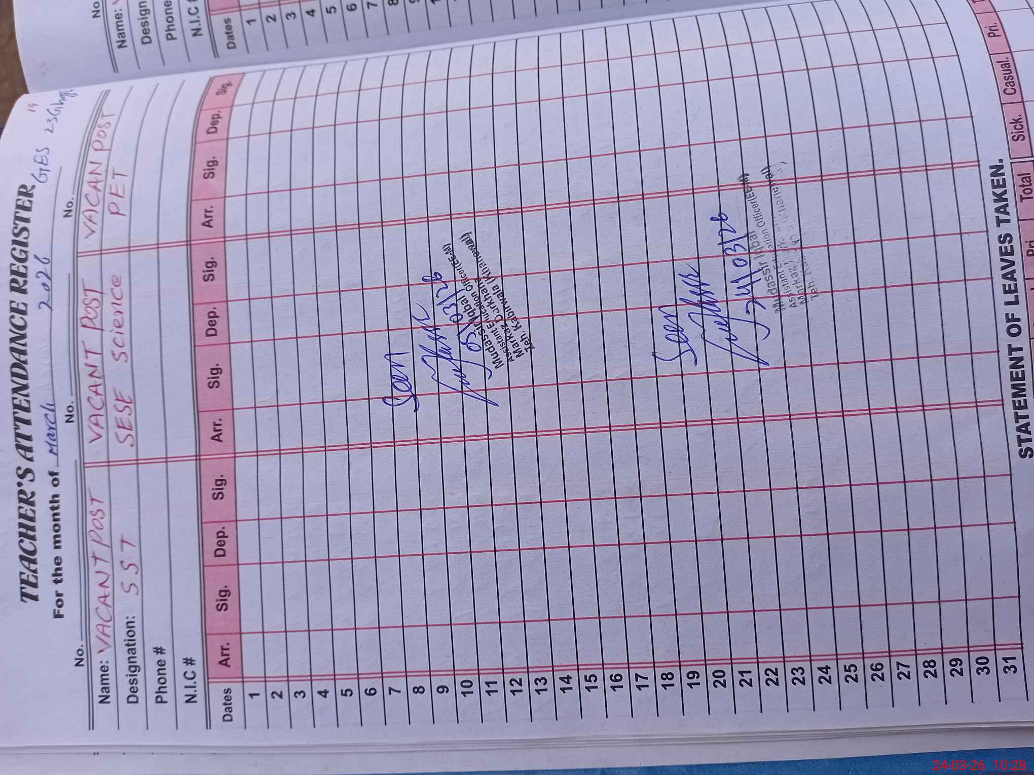 | Name: AB**** GH**** Designation: (School Headmaster's/Headmistress's) SST ( SCI+MATH) Phone/Cell Number: 03**** |