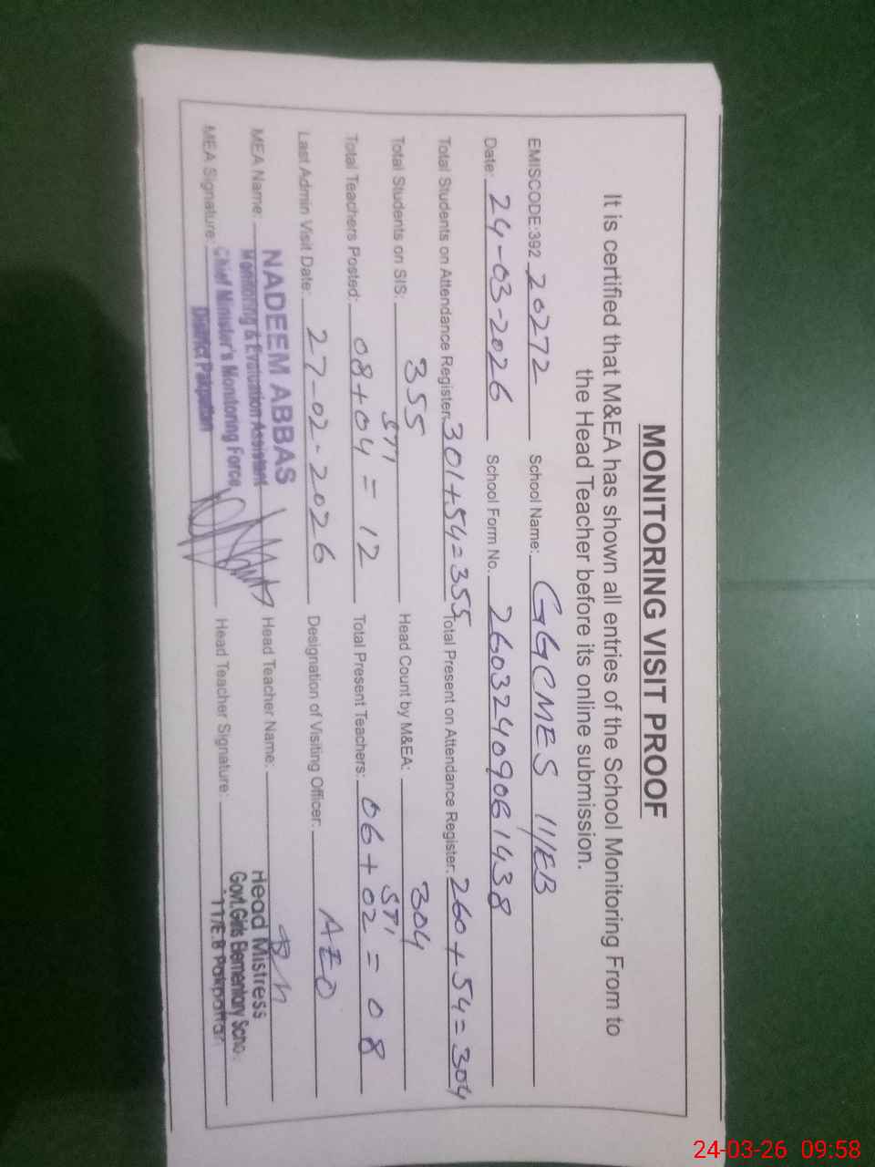 | EMIS Code: 39220272 | Name of School: GGCMES 11 EB P/O PIR SADAR DIN | |||