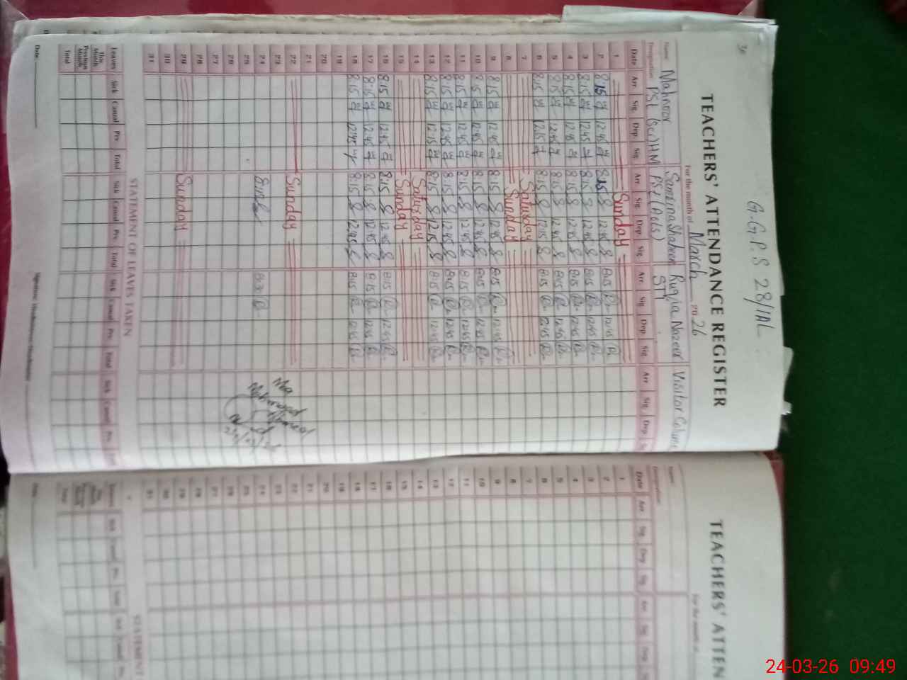 | 35**** | Ma**** | PST Science/Maths | Regular | 0 | 0 | 0 | 0 | 0 | 0 | 0 | 0 | 0 | Absent (Un-Authorized) |