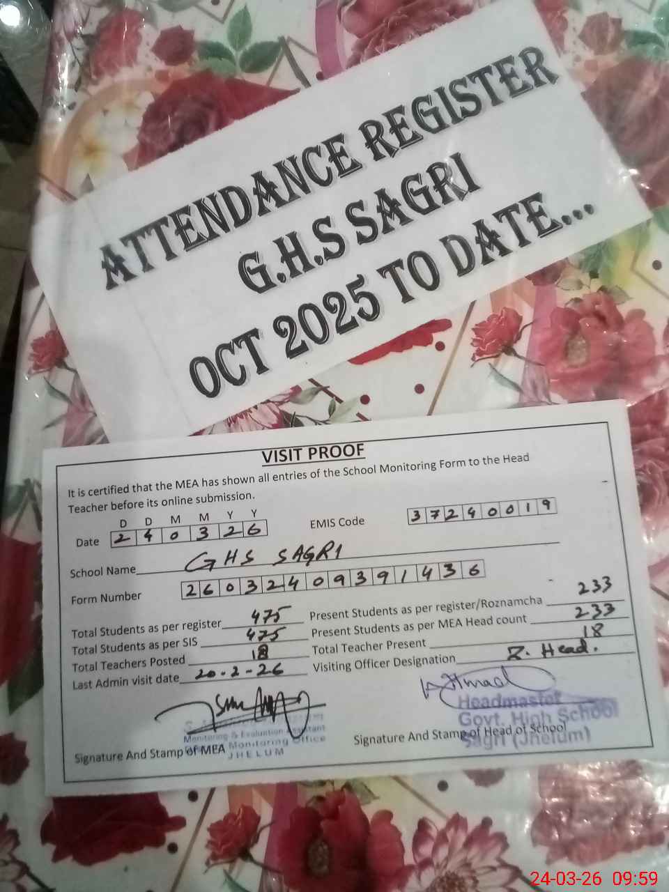 | EMIS Code: 37240019 | Name of School: GHS SAGRI | |||