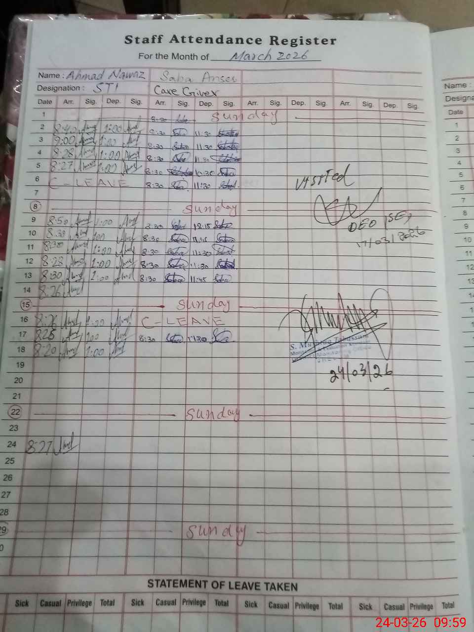 | Leave | Duty | Absent | Maternity | Medical | Ex- Pak |