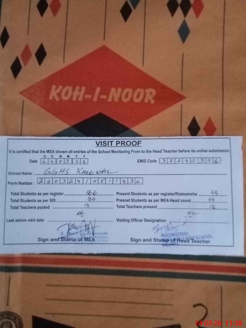 | EMIS Code: 37240396 | Name of School: GGHS KALU WAL | |||