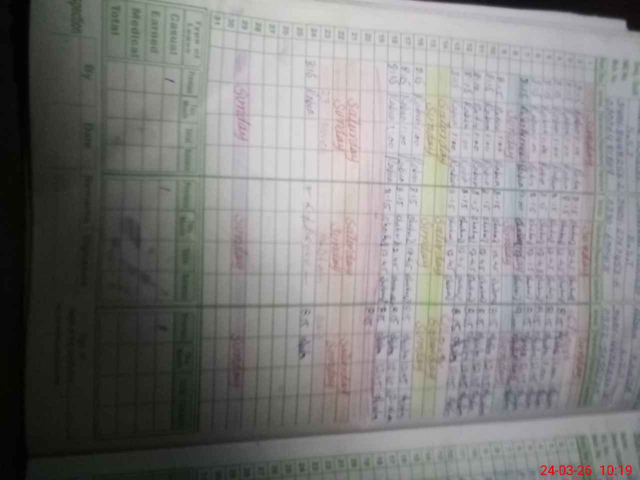 | Leave | Duty | Absent | Maternity | Medical | Ex- Pak |