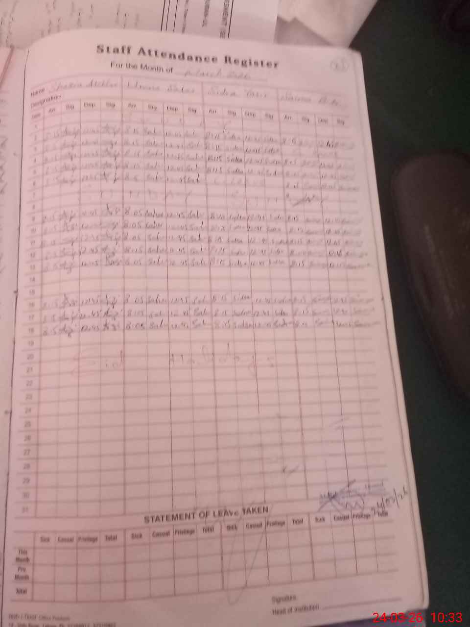 | Leave | Duty | Absent | Maternity | Medical | Ex- Pak |