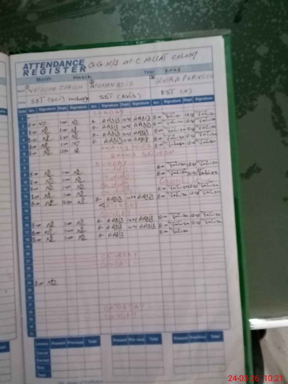 | 38**** | Gh**** Fa**** | PST Science/Maths | Regular | 0 | 0 | 0 | 0 | 0 | 0 | 0 | 0 | 0 | Absent (Un-Authorized) |