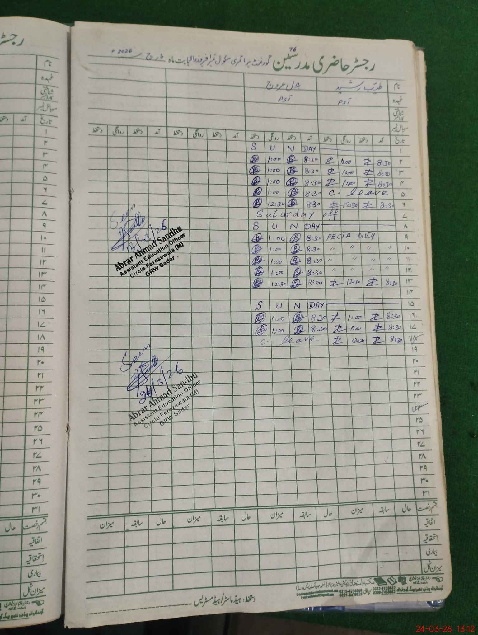 | EMIS Code: 34110204 | Name of School: GPS FEROZE WALA NO.1 | |||