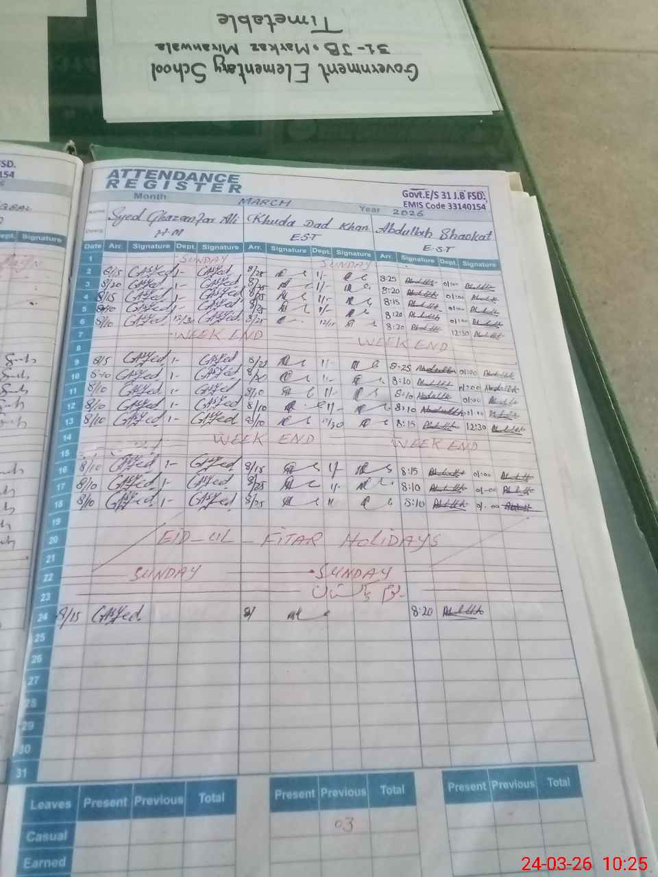 | Name: Sy**** Gh**** Al**** Designation: (School Headmaster's/Headmistress's) E S T Phone/Cell Number: 03**** |