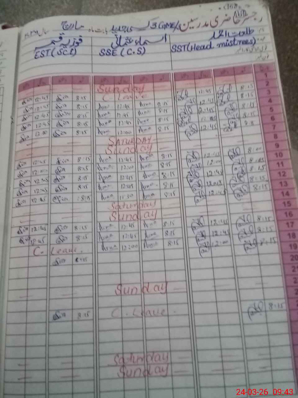 | Leave | Duty | Absent | Maternity | Medical | Ex- Pak |