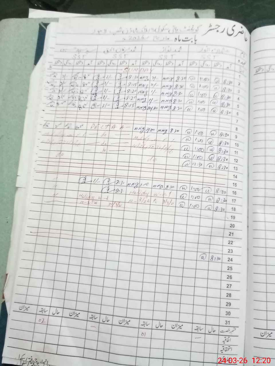| CNIC | Full Name | Designation | R/C | Absence During Last Calender Month |