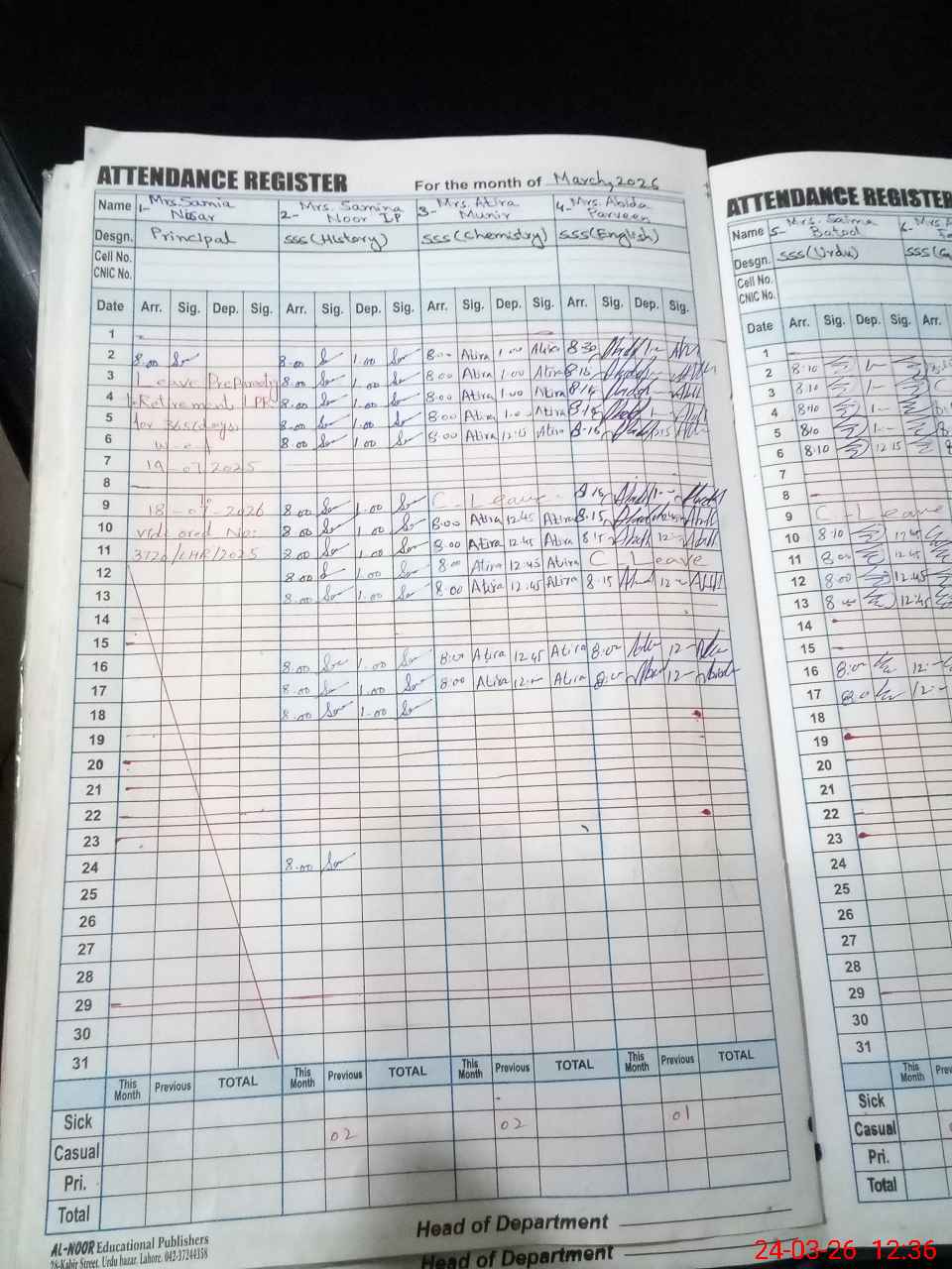 | Remarks (Use Separate Page if Required): Ahman EST FOUND LONG ABSENT WEF 21/12/25 TO TILL DATE. IQRA NAZ EST FOUND LONG ABSENT WEF 26/08/2025 TO TILL DATE. | |||||