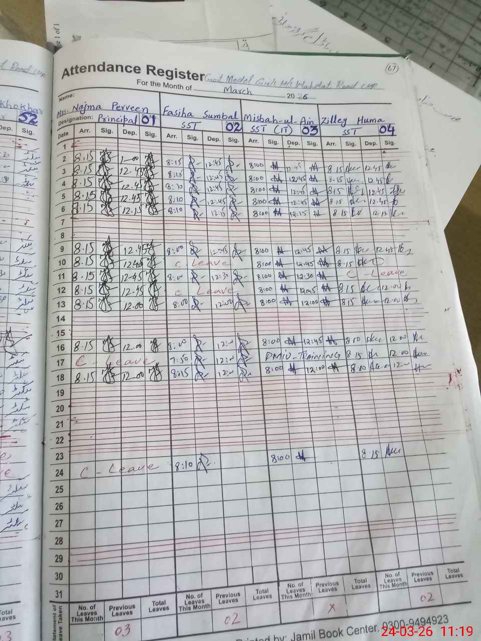 | 35**** | Na**** Pe**** | PRINCIPAL | Regular | 0 | 0 | 0 | 0 | 0 | 0 | 0 | 0 | 0 | Absent (Un-Authorized) |
