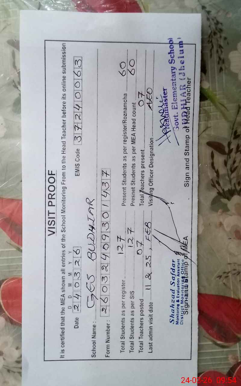 | Attendance Register | Head Teacher | MEA with School | Visit Proof |