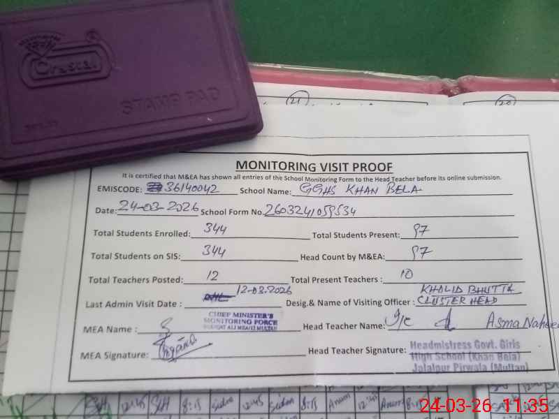 | EMIS Code: 36140042 | Name of School: GGHS KHAN BELA P/O KHAN BELA | |||